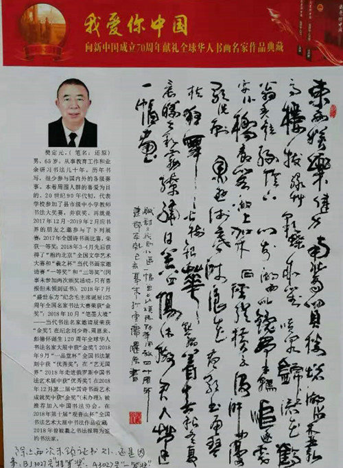 樊定元,重慶渝中區(qū)人,年月生,長期從事教育及書法研習(xí),他的書法作品奔放流暢,俊秀大方,飄逸瀟灑,特別是多體書法很具觀賞性,作品多次榮獲全國大賽一等獎(jiǎng)、金獎(jiǎng)及特等獎(jiǎng),作品多次被國內(nèi)知名媒體刊載,深受喜歡。...