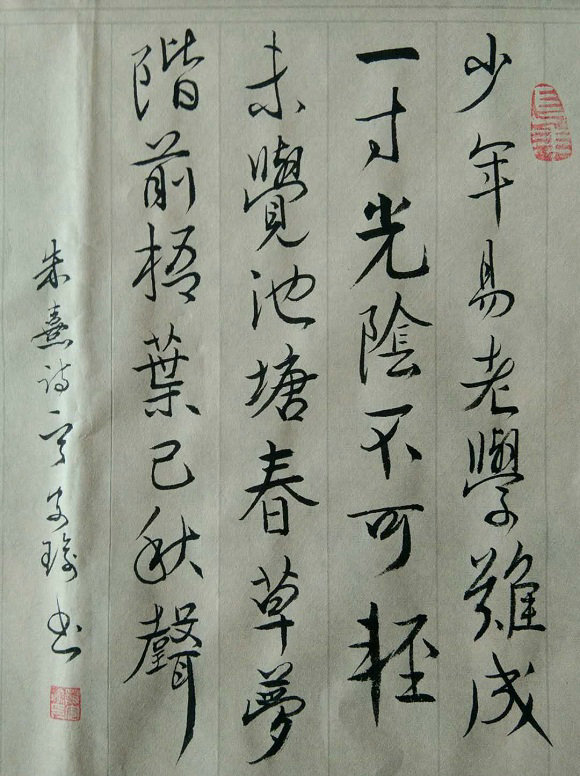 個(gè)人簡介:周光文,男,年生于楹聯(lián)、詩詞之鄉(xiāng)的湖北廣水。自幼受環(huán)境熏陶,酷愛書法。上初中時(shí)就在家鄉(xiāng)應(yīng)山縣舉辦的少年書法大賽奪得一等獎(jiǎng)。自那以后,遍臨諸貼,集思廣益,汲取精華。其行筆作書,落筆結(jié)體,求其風(fēng)神,動(dòng)其幽意,感其韻律...