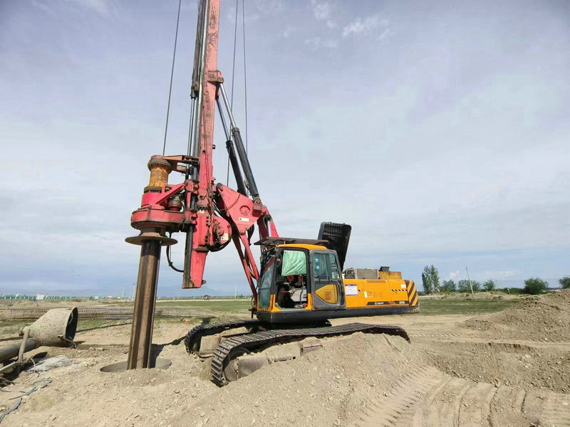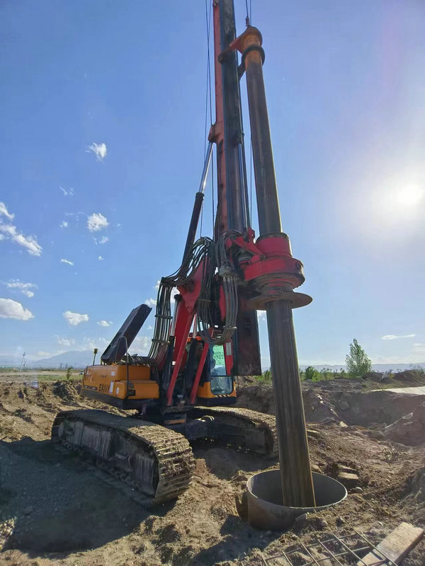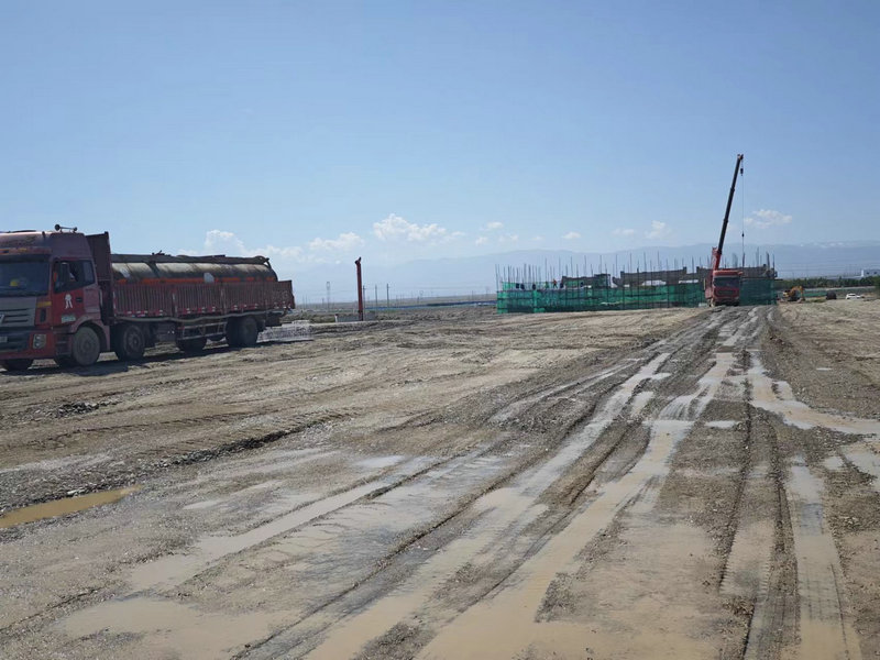 旋挖鉆鉆孔施工2024-06-22圖為新疆兵團(tuán)建工水電集團(tuán)市政路橋公司第五師雙河市沙山子線公路互通立交工程主線大橋左幅,臺(tái),樁基,旋挖鉆鉆孔施工。王小丫攝...