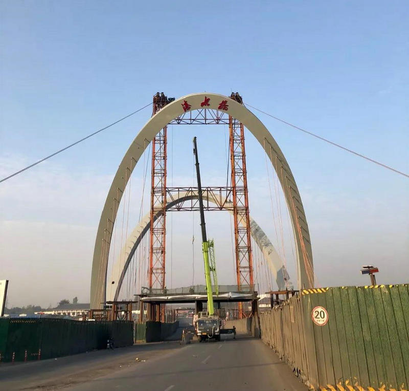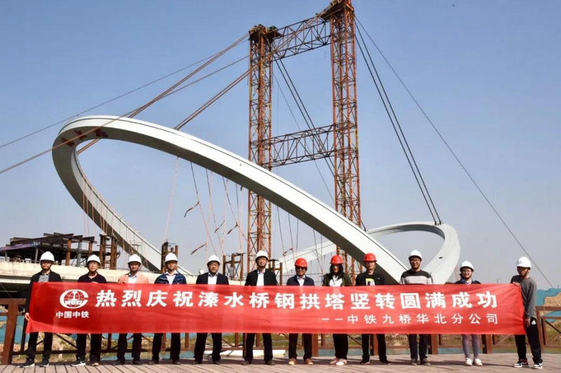 10月24日上午,隨著千斤頂將鋼拱塔拉向設(shè)計(jì)位置,標(biāo)志著由中鐵九橋華北分公司承建的新密溱水橋順利豎轉(zhuǎn)到位,成功合龍。至此,新密新添一座地標(biāo)性文化建筑。公司首次在新密溱水橋?qū)嵤?yīng)用國(guó)內(nèi)先進(jìn)技術(shù)——斜拉橋雙斜拱塔對(duì)稱同步豎轉(zhuǎn)施工工法并取得圓滿成功,這是繼太原迎賓橋獨(dú)塔豎轉(zhuǎn)施工工法成功應(yīng)用之后的又一重大施工技術(shù)突破。