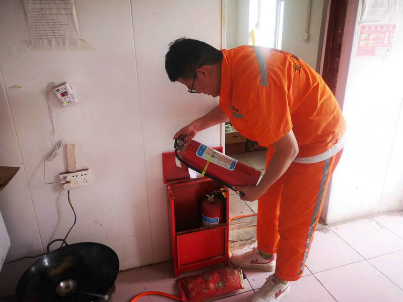 同時(shí),項(xiàng)目部對(duì)項(xiàng)目部、民工食堂燃?xì)獍踩?、宿舍安全用電、滅火器是否齊全有效等逐一進(jìn)行檢查,確保滅火器始終處于良好狀態(tài),能夠有效起到預(yù)防火災(zāi)的作用。