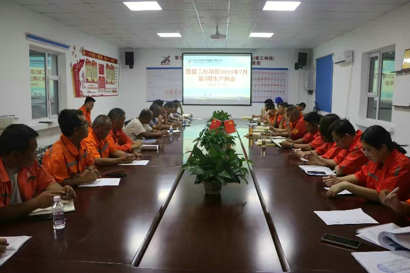 圖木舒克訊(通訊員 曾雷)7月21日,圖昆公路二標(biāo)項(xiàng)目部召開(kāi)施工生產(chǎn)例會(huì),項(xiàng)目部領(lǐng)導(dǎo)、各部門(mén)負(fù)責(zé)人、施工班組長(zhǎng)共42名人員參加了會(huì)議,會(huì)議由項(xiàng)目經(jīng)理董軍主持。