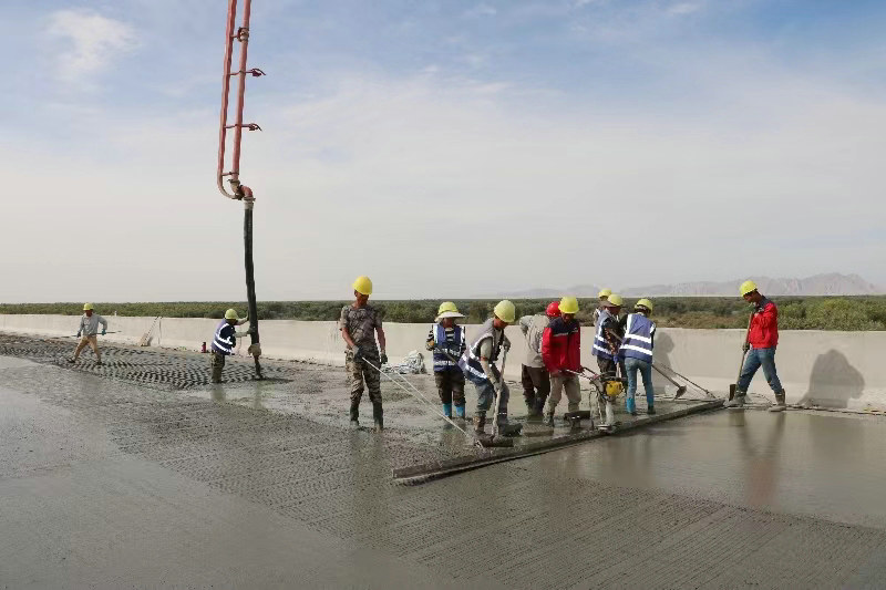 葉爾羌河特大橋全長(zhǎng)2888m,上部結(jié)構(gòu)橋跨為96×30m,共24聯(lián),橋梁寬11。箱梁調(diào)平層厚度12cm,所需澆筑C50混凝土4147.2m³,D12帶肋鋼筋網(wǎng)片708t,橋面鋪裝橫向按整橋凈寬、縱向按一聯(lián)一次澆筑。