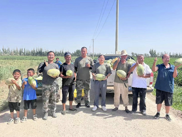 7月進(jìn)入瓜果集中上市的季節(jié),第三師51團(tuán)連隊西瓜、甜瓜陸續(xù)成熟,連隊村民沉浸在豐收的喜悅中。但由于部分村民瓜果種植面積較小不易集中銷售,且西瓜不易長期保存,每到這個時候賣瓜難一度讓瓜農(nóng)們著急不已。在了解到這一情況后,7月18日,北新路橋圖木舒克子公司黨支部與51團(tuán)13連連隊聯(lián)合開展“企地攜手合作、助力瓜農(nóng)增收”共建活動,認(rèn)真履行企業(yè)社會責(zé)任,采購村民甜瓜1600斤、西瓜3000斤用于圖昆項目送清涼慰問品,以實(shí)際行動幫助當(dāng)?shù)毓限r(nóng)銷售瓜果。