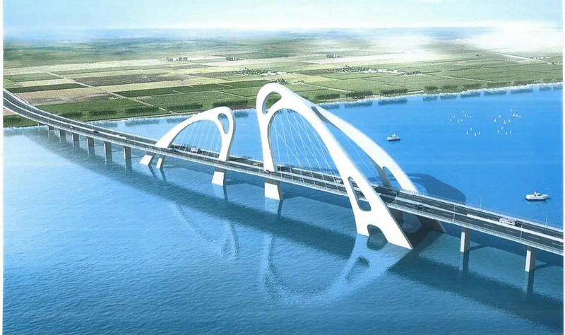 白馬湖大橋位于江蘇省重要生態(tài)保護(hù)和涵養(yǎng)區(qū)——淮安市白馬湖生態(tài)旅游度假區(qū)內(nèi),作為景區(qū)內(nèi)最重要的基礎(chǔ)設(shè)施之一,發(fā)揮著連接湖區(qū)內(nèi)外、串聯(lián)內(nèi)部景點(diǎn)的作用,同時也是淮安未來的地標(biāo)名片。其設(shè)計靈感來源于“魚躍龍門”,一大一小兩座拱塔宛若躍出湖面的白色雙魚,美觀奇特。
