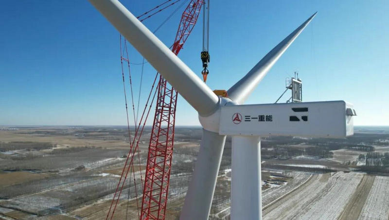 東北黑土地,見證了中國風(fēng)電一大里程碑時刻。近日,在吉林通榆,三一重能7.XMW平臺首臺風(fēng)電機(jī)組成功完成吊裝。三一重能率先將7.XMW陸上風(fēng)機(jī)商業(yè)化應(yīng)用,創(chuàng)下全球陸上最大商業(yè)化風(fēng)機(jī)新紀(jì)錄。該風(fēng)場總?cè)萘?00MW,全部采用三一重能7.XMW平臺風(fēng)電機(jī)組,將成為全球首個單機(jī)7.XMW風(fēng)機(jī)批量商業(yè)化陸上風(fēng)場。