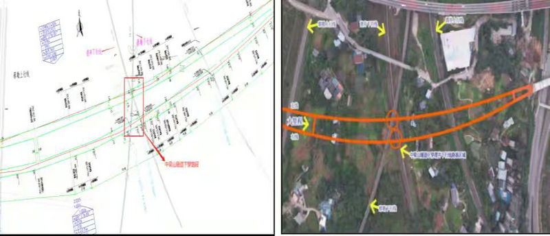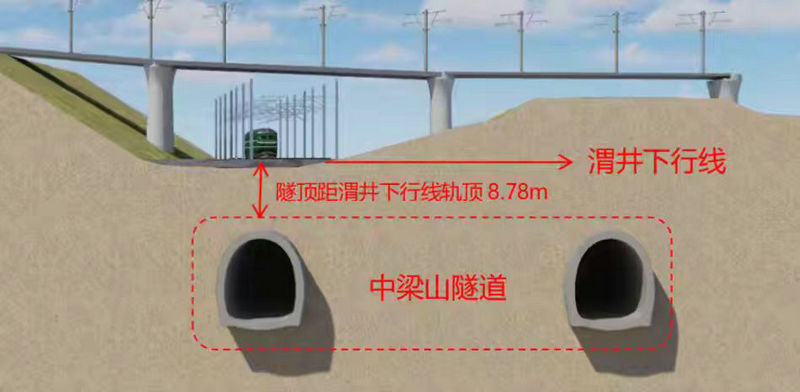 中梁山隧道以單洞單線隧道下穿渭井下行線路基區(qū)間圖