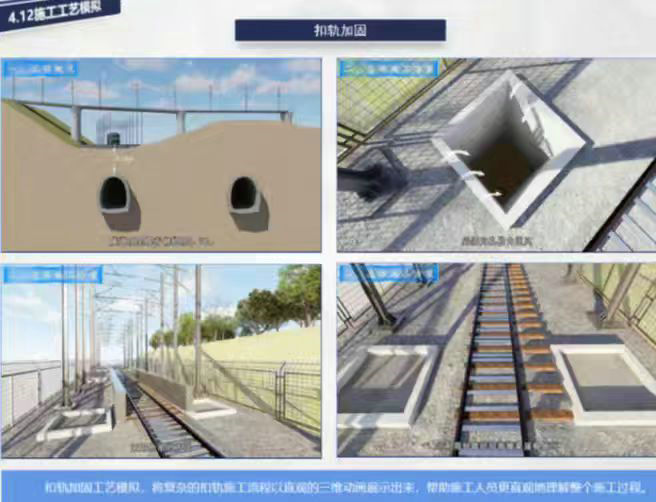 應(yīng)用BIM技術(shù)為中梁山隧道下穿下行線保駕護(hù)航,中梁山隧道全長(zhǎng)4900余米,地質(zhì)條件差,環(huán)境復(fù)雜,其中隧道下穿渭井下行線路基區(qū)間、隧道頂與渭井下行線路基的豎向距離為8.78米。為保證鐵路既有線運(yùn)營(yíng)安全和施工安全,項(xiàng)目部利用BIM技術(shù)創(chuàng)建精細(xì)的三維模型,將中梁山隧道與渭井下行線路基區(qū)間的地形、地貌、地質(zhì)條件以及周邊環(huán)境等信息進(jìn)行了全面、準(zhǔn)確的表達(dá)。通過(guò)模型,可以清晰地看到隧道與線路之間的空間關(guān)系,以及可能存在的風(fēng)險(xiǎn)點(diǎn)。為制定風(fēng)險(xiǎn)處理措施,優(yōu)化施工方案、加強(qiáng)安全監(jiān)控、采取必要的防護(hù)措施等提供了重要的參考依據(jù)。