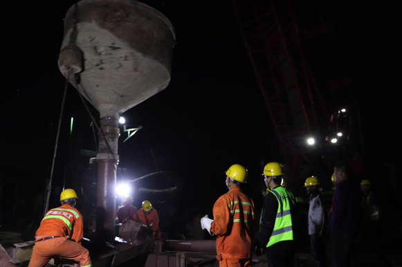浙江杭州訊:經(jīng)過中鐵十一局集團(tuán)湖杭鐵路項目建設(shè)者們10小時連續(xù)奮戰(zhàn),4月28日,上午7點36分,成功將一根直徑2.5米、長100米,好似“金箍棒”的樁基牢牢地“插入”余杭特大橋358號墩下,成功完成項目首根百米深樁澆筑任務(wù),為下步施工積累了寶貴的經(jīng)驗。