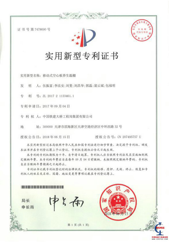 圖三、移動式空心板養(yǎng)生溫棚專利證書