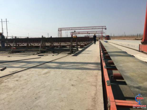 “鋼筋構件傳輸裝置”(專利號:2017211230311)可將完成加工的梁板半成品鋼筋,通過傳送帶直接傳送至鋼筋綁扎胎架處,最大程度上節(jié)省了人力,縮短了時間,極大地提高了梁板施工效率。傳送帶的運用為傳送各類鋼筋構件和小型器具提供了便利,在對講機的協(xié)助下,預制梁板工序銜接更加及時,順暢。