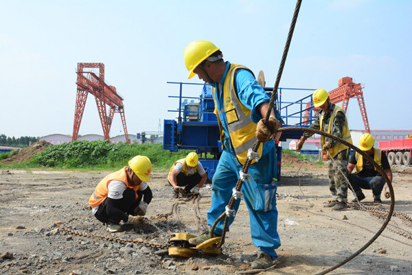 這天一早6時(shí)許,魯南項(xiàng)目部的建設(shè)者們便早早投入到緊張的施工:緊固提梁機(jī)走行夾軌器,放置止輪鐵楔、剛?cè)嵬燃庸汤|風(fēng)繩,為提梁機(jī)的正式拆解做最后的準(zhǔn)備工作。“包隊(duì)長(zhǎng),你再檢查一下拆解設(shè)備的工機(jī)具是否齊全。”項(xiàng)目部機(jī)械負(fù)責(zé)人劉凡指導(dǎo)完提梁機(jī)加固纜風(fēng)繩后,又匆匆趕到吊車(chē)前指揮吊車(chē)就位。提梁機(jī)拆解是項(xiàng)目部一項(xiàng)重要工作節(jié)點(diǎn),這一任務(wù)緊張且艱巨,作為年后復(fù)工三個(gè)月來(lái),從沒(méi)休息過(guò)一天的“小鐵人”,施工現(xiàn)場(chǎng)情況少盯控一眼,都讓劉凡坐立難安。