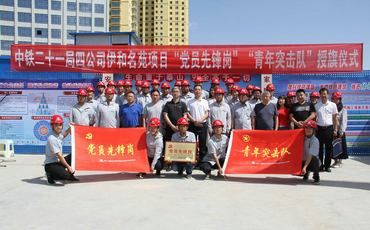 為慶祝建黨99周年,深入貫徹習(xí)近平新時(shí)代中國特色社會主義思想和黨的十九大精神,緊密結(jié)合公司“項(xiàng)目管控創(chuàng)效年”活動,充分發(fā)揮項(xiàng)目部黨員先鋒模范帶頭作用特別是青年職工生力軍作用,持續(xù)推進(jìn)項(xiàng)目創(chuàng)新發(fā)展、管理升級、提質(zhì)增效,7月1日,中鐵二十一局四公司臨夏市伊和名苑棚戶區(qū)改造A區(qū)項(xiàng)目部舉行“黨員先鋒崗”授牌、“青年突擊隊(duì)”授旗儀式,公司黨委書記、董事長朱昌岳,黨委副書記、紀(jì)委書記杜長松,特級項(xiàng)目經(jīng)理、副總經(jīng)理卜宗舉,副總經(jīng)理祁濤,臨夏道合房地產(chǎn)開發(fā)有限責(zé)任公司黨委書記、董事長馬麟出席儀式,儀式由杜長松主持。