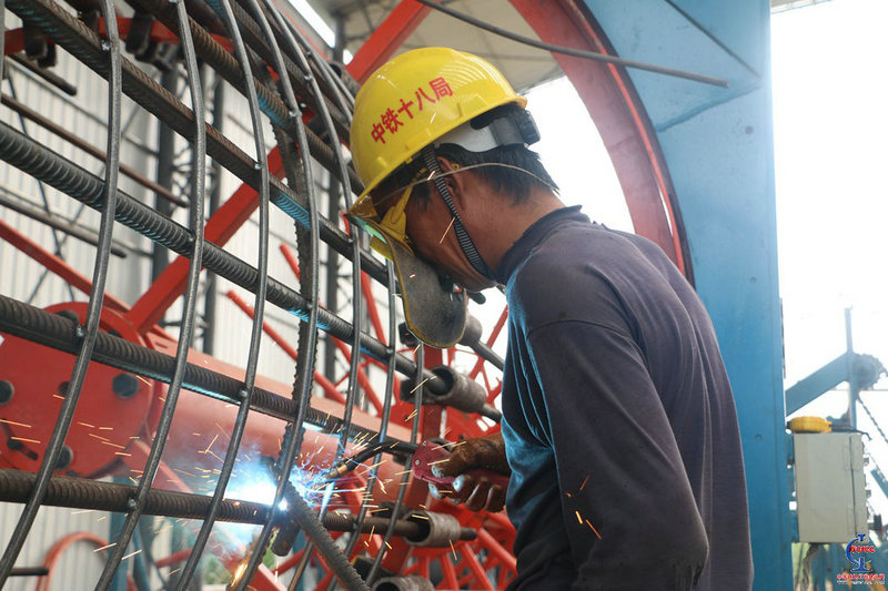 8月8日上午10時(shí),在中鐵十八局合銅9標(biāo)梁場(chǎng)工區(qū)鋼筋加工產(chǎn)內(nèi),陣陣熱浪就迎面襲來(lái),令人窒息,此時(shí)正是上班時(shí)間。老王正在滾焊機(jī)操作臺(tái)邊按鈕邊上,雖然滾焊機(jī)焊接鋼筋籠十分省心,但他的眼睛死死地盯著滾焊機(jī)上的每根鋼筋,生怕有絲毫閃失,是因?yàn)樗屯閭円恢睕]有改變精益求精的初心和一絲不茍的工作習(xí)慣。