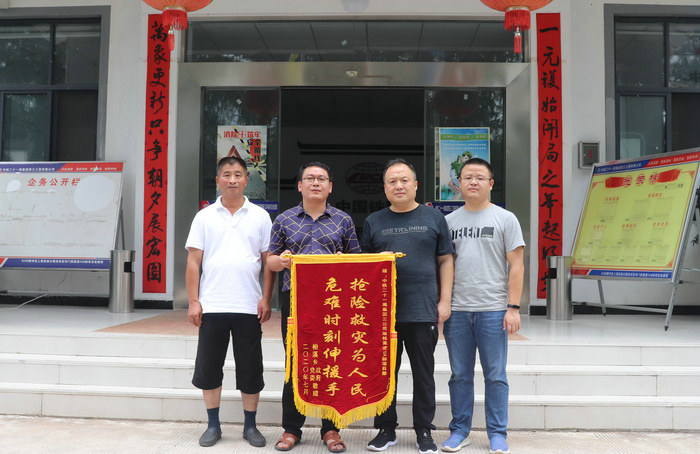 圖為祁門縣柏溪鄉(xiāng)黨委送來(lái)錦旗情急之下,鄉(xiāng)政府領(lǐng)導(dǎo)向項(xiàng)目部求援。汛情就是命令,搶險(xiǎn)就是責(zé)任。項(xiàng)目部接到求援信息后,立即同鄉(xiāng)政府對(duì)接,以“群眾利益無(wú)小事,群眾生命安全為大事”為出發(fā)點(diǎn),在項(xiàng)目部自己同樣遭受洪水襲擊的情況下,一邊開(kāi)展自救,一邊迅速組織人員,調(diào)配機(jī)械車輛協(xié)同地方政府抗洪救災(zāi)。