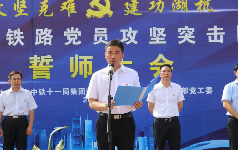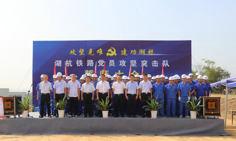 杭黃鐵路公司(滬昆客專浙江公司)黨委副書記、紀委書記丁玉強調(diào),“攻堅克難,建功湖杭”黨員攻堅突擊隊誓師活動,是項目今年黨建、團建創(chuàng)新工作的一個重要載體,是以構(gòu)建項目建設(shè)和黨建融合的一體化格局豐富黨建內(nèi)涵、深化“黨建+”品牌的重要抓手,是打響全線黨員聯(lián)合攻堅、助推項目主戰(zhàn)場的深入實踐,也是加強和深化企業(yè)黨建工作,充分調(diào)動廣大黨員、團員青年立足崗位、扎根一線、攻堅克難的一個重要方式,有利于加強湖杭鐵路全線參建單位溝通交流、黨建工作資源的整合、黨建活動的開展,切實為湖杭鐵路施工生產(chǎn)凝心聚力、保駕護航。