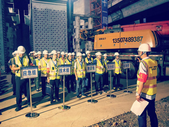 為保證吊裝任務(wù)安全、優(yōu)質(zhì)、高標(biāo)準(zhǔn)完成,益陽(yáng)指揮部領(lǐng)導(dǎo)多次帶隊(duì)到施工現(xiàn)場(chǎng)幫扶指導(dǎo)工作,針對(duì)工程特點(diǎn),在施工前,他們多次組織該項(xiàng)目召開鋼蓋梁吊裝施工準(zhǔn)備會(huì)、技術(shù)交底會(huì)及安全交底會(huì)等,進(jìn)行施工組織設(shè)計(jì)及方案的研討,根據(jù)現(xiàn)場(chǎng)實(shí)際情況進(jìn)行吊裝演練。從物資供應(yīng)、現(xiàn)場(chǎng)安排,到施工工藝、人員分工,再到安全措施、質(zhì)量標(biāo)準(zhǔn),每個(gè)環(huán)節(jié)都制定了詳細(xì)的方案,對(duì)參與工程施工的人員進(jìn)行技術(shù)培訓(xùn),安排專人定崗定責(zé),確保項(xiàng)目各級(jí)成員通力合作。“請(qǐng)各組做好準(zhǔn)備,吊裝正式開始”隨著指揮員的一聲令下,750噸的巨型吊車將263噸的“大家伙”緩緩吊起至26米,逆時(shí)針轉(zhuǎn)動(dòng)68度,經(jīng)過3小時(shí)的吊裝作業(yè),在有效的“天窗”時(shí)間內(nèi)安全順利地將鋼蓋梁成功跨越烏山聯(lián)絡(luò)線。