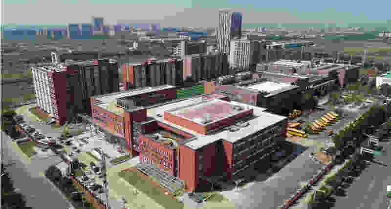 合肥加拿大外籍人員子女學(xué)校由中鐵北京工程局承建,位于合肥高新區(qū)復(fù)興路與文曲路十字西南角,總建筑面積約67909㎡,最大單體建筑面積約63887㎡,建設(shè)內(nèi)容包括教學(xué)樓、綜合樓、教師及學(xué)生公寓、食堂、運(yùn)動(dòng)場(chǎng)館、地下車庫(kù)、室內(nèi)運(yùn)動(dòng)場(chǎng)地等相關(guān)配套工程,可滿足500余名外籍人員子女入學(xué)需求。