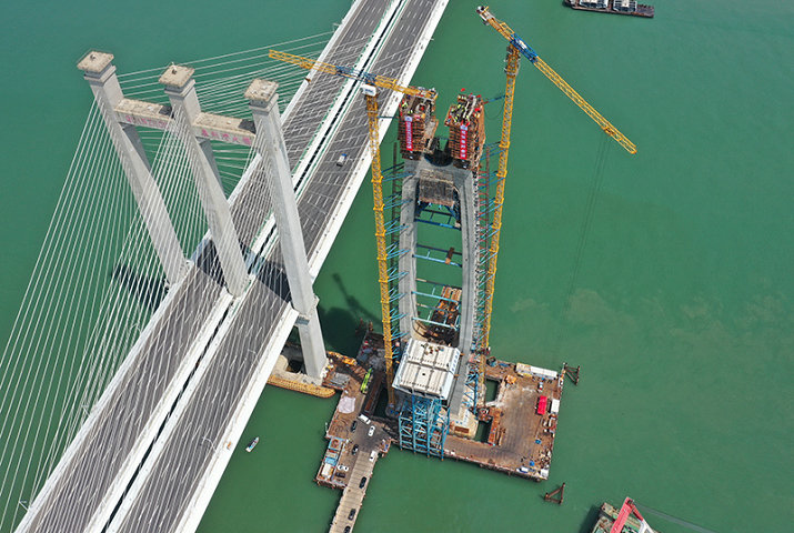 當(dāng)日,新建福(州)廈(門)鐵路泉州灣跨海大橋南岸主塔成功封頂。該跨海大橋是新建福廈鐵路重點控制性工程,全長約20公里,海上橋梁長約9公里。新建福廈鐵路設(shè)計時速350公里,預(yù)計2022年通車。
