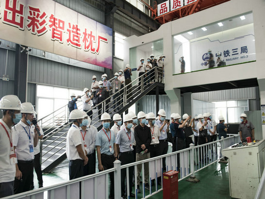 觀摩團(tuán)一行近距離觀看軌枕生產(chǎn)線