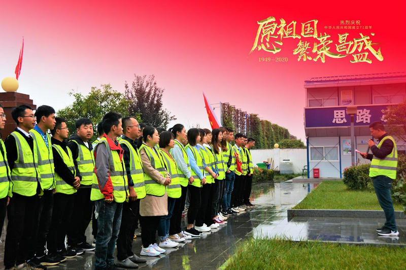 2020年10月1日,中華人民共和國成立71周年,當(dāng)日上午8:00,中鐵廣州局市政環(huán)保公司西咸項(xiàng)目部,組織全體員工舉行2020年國慶升旗儀式。在項(xiàng)目部樓前員工們見證這莊嚴(yán)、隆重的升國旗時(shí)刻。五星紅旗在項(xiàng)目部樓前冉冉升起,祝福祖國!