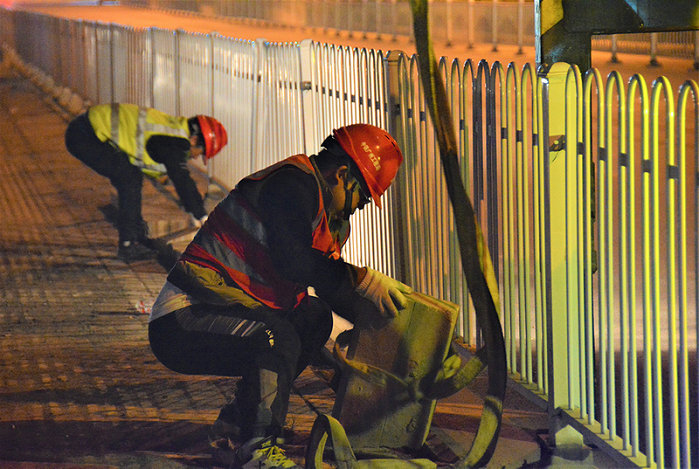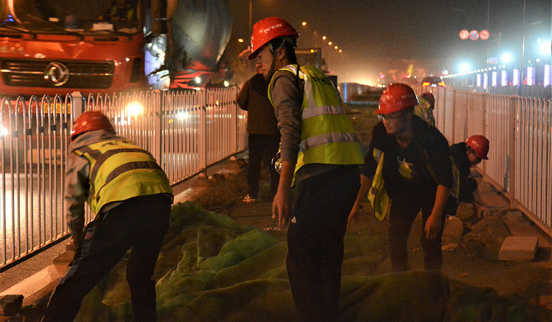 10月19日晚,為方便市民出行,中鐵廣州局市政環(huán)保公司西咸項目部青年突擊隊全體隊員集結起來一同前往項目能源三路站施工現(xiàn)場,對現(xiàn)場一旁的市政道路中央綠化隔離帶進行清理恢復,還路于民。現(xiàn)場上,30余名突擊隊員有的搬運石塊,有的整理綠化草墊,有的指揮交通,過程中,大家穿梭忙碌的身影形成了一道亮麗的風景線,給現(xiàn)場增添了一份溫馨和熱情。經(jīng)過突擊隊員們近4小時的奮戰(zhàn),現(xiàn)場面貌煥然一新。