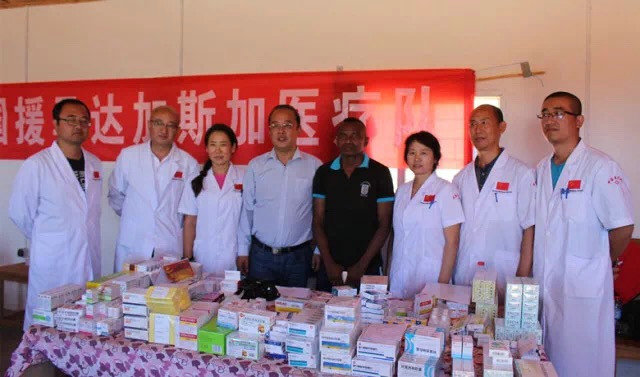 中國醫(yī)療隊在中鐵十八局馬達加斯加9號公路項目部與參建員工合影