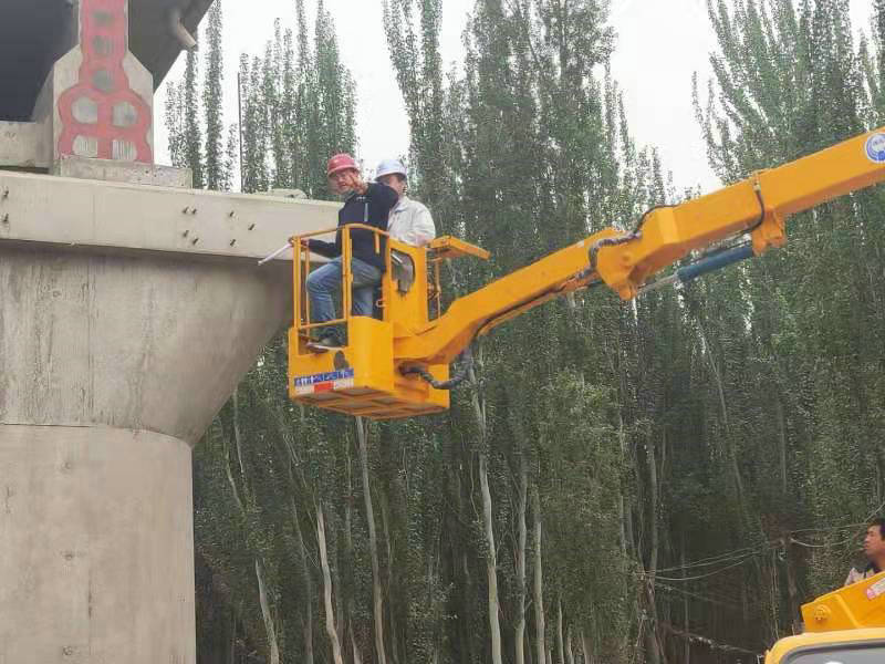 面對(duì)施工現(xiàn)場(chǎng)惡劣環(huán)境,試驗(yàn)人員迎難而上,配合施工方進(jìn)行檢測(cè)工作。在進(jìn)入冬季施工后,面對(duì)檢測(cè)工作量少和零下十幾度的寒冷低溫,試驗(yàn)員仍舊堅(jiān)守,只要施工方報(bào)檢,無(wú)論是漫天黃沙,還是飛雪連天,他們依舊堅(jiān)持在工作現(xiàn)場(chǎng)。疫情期間,施工方小型交通工具被管制,只有大型施工機(jī)械才能外出。為了不耽誤現(xiàn)場(chǎng)施工,試驗(yàn)員在做好個(gè)人防護(hù)措施的情況下,乘坐吊車外出檢樁。