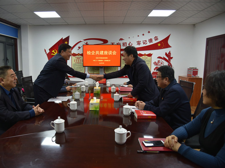 1月14日下午,新疆維吾爾自治區(qū)人民檢察院烏魯木齊鐵路運輸檢察分院黨組書記、檢察長馬士軍一行5人到中鐵二十一局一公司總部與公司董事長、黨委書記李啟成、黨委副書記、總經(jīng)理楊紅亮、黨委副書記、紀(jì)委書記關(guān)崇屹等人舉行了座談,互相介紹了檢察院、一公司最新改革發(fā)展情況,增進了雙方的了解。