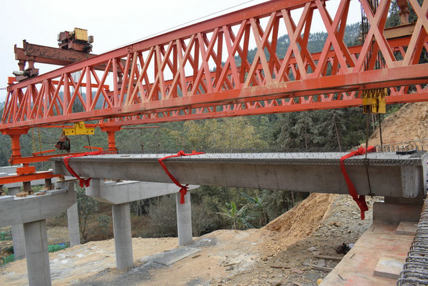 六賓三標(biāo)項(xiàng)目部承擔(dān)的施工任務(wù)中,共有橋梁12座,架梁1103片。在集團(tuán)公司和公司正確領(lǐng)導(dǎo),項(xiàng)目部全體參建人員共同努力,用科學(xué)嚴(yán)謹(jǐn)?shù)膽B(tài)度制定了《架梁施工方案》、《預(yù)制梁吊裝安全技術(shù)交底》及《預(yù)制梁吊裝應(yīng)急救援預(yù)案》等一系列保障措施,促使首片梁的架設(shè)提前了兩個(gè)月。