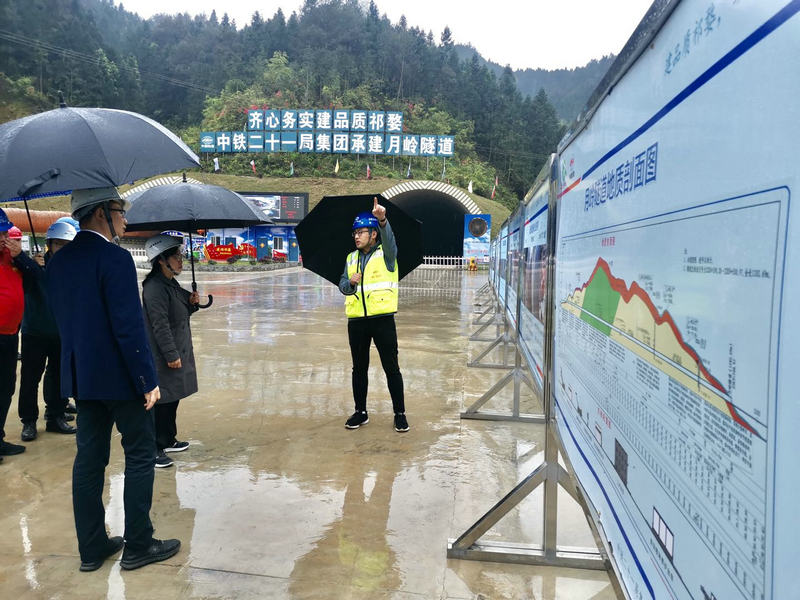 王新田一行在A1標段月嶺隧道進口聽取了項目負責人李蕓、總工程師陳志泉分別就該標段施工進展情況、安全質量控制、新技術、新工藝、微創(chuàng)新等方面的匯報。王新田詢問了隧道二襯自動化噴淋養(yǎng)護臺車、二襯臺車模板“軟搭接”、仰拱澆筑弧形模板、二襯防水布鋪設自動提升臺車、二襯混凝土澆筑自動監(jiān)控等微創(chuàng)新,對于提升工程質量和減少員工勞動強度方面的作用及效果;并對洞內人員、設備自動跟蹤監(jiān)測系統(tǒng)、安全帽規(guī)范佩戴自動提醒系統(tǒng)、二襯鋼筋定位卡、二襯防水板固定套裝和自動錨桿機等新技術、新工藝應用對于提高隧道施工安全、保證隧道施工質量、減少員工勞動強度的作用進行了詳細了解,項目辦及A1標段領導逐一進行了解答。王新田對該標段新技術、新工藝及微創(chuàng)新應用和取得的成績表示贊賞。