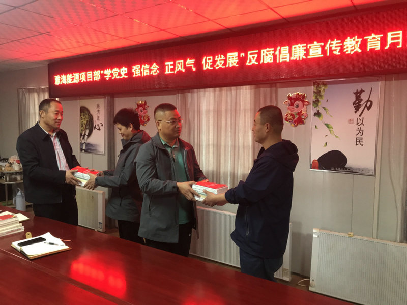 為深入貫徹十九屆五中全會(huì)和十九屆中央紀(jì)委五次全會(huì)精神,落實(shí)股份公司、集團(tuán)和公司2021年黨風(fēng)廉政建設(shè)和反腐敗工作會(huì)議部署,深入推進(jìn)反腐倡廉宣傳教育工作常態(tài)化、長效化,切實(shí)增強(qiáng)項(xiàng)目黨員領(lǐng)導(dǎo)干部廉潔意識(shí)和拒腐防變能力,按照公司紀(jì)委下發(fā)的《關(guān)于開展“學(xué)黨史 強(qiáng)信念 正風(fēng)氣 促發(fā)展”反腐倡廉宣傳教育月活動(dòng)的通知》文件精神,雅海能源項(xiàng)目結(jié)合黨史學(xué)習(xí)教育,鞏固深化“不忘初心,牢記使命”主題教育成果,開展了以“學(xué)黨史 強(qiáng)信念 正風(fēng)氣 促發(fā)展”為主題的反腐倡廉宣傳教育月系列活動(dòng)。