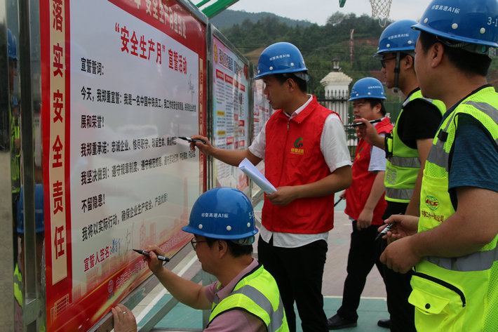 今年是20個安全生產(chǎn)月,也是祁婺高速施工的關鍵之年,安全生產(chǎn)關系著每一個員工的家庭幸福,必須常抓不懈。參加“安全生產(chǎn)月”啟動儀式的同志,面對誓言墻舉手宣誓:安全生產(chǎn)是我的崇高職責,為了項目建設,為了自己和他人生命安全,作為一名負責任的企業(yè)員工,我保證自覺做到不違章作業(yè),不違反勞動紀律,嚴格履行安全職責……。宣誓后,員工們分別鄭重在“安全生產(chǎn)月”誓言墻上簽下自己的名字。