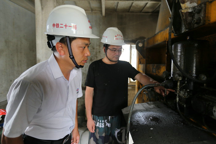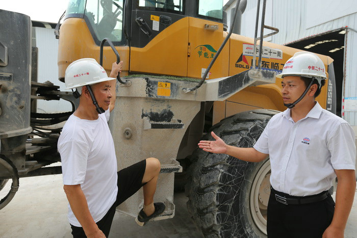 圖為王軍和裝載機(jī)司張志榮交流安全作業(yè)注意事項(xiàng)他的身上傳承著鐵道兵基因。他的父親是1971年入伍的鐵道兵老同志,為企業(yè)奉獻(xiàn)了一輩子,王軍從小耳濡目染,深深地愛上了筑路事業(yè)。2006年7月,他從湖南湘潭職業(yè)技術(shù)學(xué)院土木工程專業(yè)畢業(yè)后,子承父業(yè)成為中鐵二十一局三公司的一員,開啟了他筑路人生的新篇章。