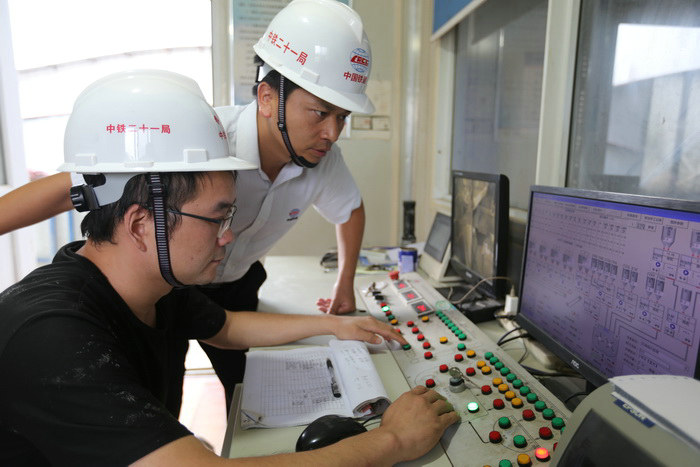 圖為王軍(右)在拌合樓指導(dǎo)員工操作控制臺(tái)紅渡紅水河雙線特大橋,是貴南高鐵廣西段三座控制性重難點(diǎn)特大橋之一,主跨156米純混凝土連續(xù)梁,是國(guó)內(nèi)時(shí)速350公里高鐵最大跨度,在亞洲和世界都堪稱第一,對(duì)混凝土質(zhì)量標(biāo)準(zhǔn)要求極高。連續(xù)梁設(shè)計(jì)混凝土標(biāo)號(hào)為C55,使用河砂來自200公里外的南寧橫縣,為確保料原優(yōu)質(zhì),每次進(jìn)料,王軍都要和試驗(yàn)員、材料員現(xiàn)場(chǎng)驗(yàn)收。用王軍的話說:“一看、二摸、三取樣。”經(jīng)試驗(yàn)檢測(cè)各項(xiàng)指標(biāo)合格方可入庫(kù),過不了這三關(guān)直接拒收,在他的嚴(yán)格把關(guān)下,為優(yōu)質(zhì)建成世界第一大跨度橋梁提供了可靠保證。