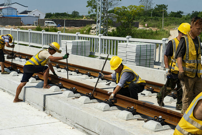 黃黃高速鐵路全線鋪軌告捷該公司自進場以來,項目部嚴格按照武九客專湖北公司總體目標,落實公司安全生產(chǎn)要求,精心組織,精準施作。在鋪軌、架梁、制枕等多個專業(yè)不斷努力,加強自身管理,不斷探索創(chuàng)新,進行信息化管控,實現(xiàn)智能建造。并成功打造出信息化與自動化深度融合的國內(nèi)乃至全世界最先進的雙塊式軌枕制造廠。鋪軌期間,廣大參建員工克服種種不利因素,多措并舉,以黃黃高鐵浠水南站為鋪軌中心,采用兩臺WZ-500型長鋼軌鋪設機組,實現(xiàn)了6月19日首鋪的節(jié)點目標。全體參建將士發(fā)揚“凝心聚力、攻堅克難”的精神,在做好疫情常態(tài)化防控的同時,以鋪軌節(jié)點目標為導向,風雨兼程,戰(zhàn)汛情斗酷暑、晝夜奮戰(zhàn)、攻克多項技術難關,不斷刷新鋪軌進程。于8月9日完成黃黃高鐵與安九高鐵黃梅東站順利接軌,至9月1日順利完成全線鋪軌任務。