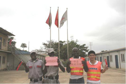 會(huì)后,在安員工還與安籍工人分組進(jìn)行了討論和交流,并用葡語(yǔ)(當(dāng)?shù)毓俜秸Z(yǔ)言)翻譯“中非友誼萬(wàn)歲”。