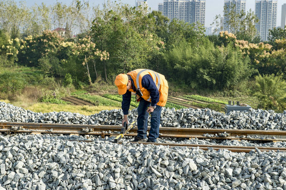 在蘄春南站現(xiàn)場負責人李強強說:“這次大機作業(yè)機會難得,時間緊、任務重。我們全員取消了休假,卯足了干勁努力完成蘄春南站有砟軌道線路達標工作。我們的主要任務是檢查軌距和水平是否達到了標注的尺寸,把作業(yè)后缺少石砟的地段補足。接下來,還要投入人力進行補充石砟和找細工作。”