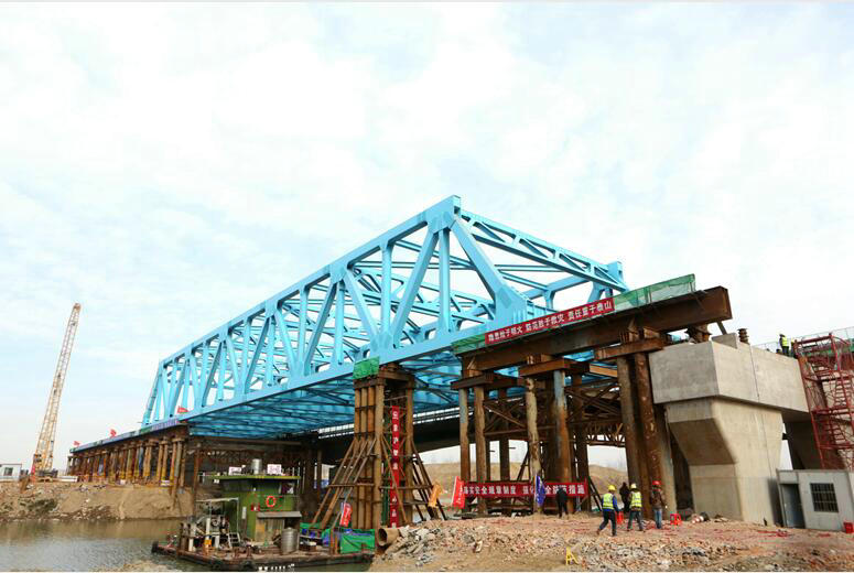 12月28日上午,經(jīng)過(guò)24個(gè)小時(shí)的托拉、檢驗(yàn)、糾偏、落梁等工序,長(zhǎng)95米,重1450噸的鋼桁梁穩(wěn)穩(wěn)落在橋墩上,京滬高速公路改擴(kuò)建項(xiàng)目跨鹽河95米鋼桁梁采用浮托法架設(shè)順利完成,標(biāo)志著由中鐵一局三公司承建的京滬高速公路改擴(kuò)建項(xiàng)目施工進(jìn)入新的階段。據(jù)悉,采用浮托法對(duì)鋼桁梁進(jìn)行架設(shè)工藝為中鐵一局首次應(yīng)用。