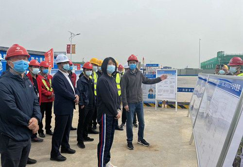楊鷗一行深入施工現(xiàn)場,詳細了解了項目部2022年施工進度計劃并聽取了項目現(xiàn)階段產(chǎn)值完成情況、項目管理措施等內(nèi)容的匯報,對項目部在組織施工生產(chǎn)中取得的階段性成果以及攻堅克難的精神給予了充分肯定。