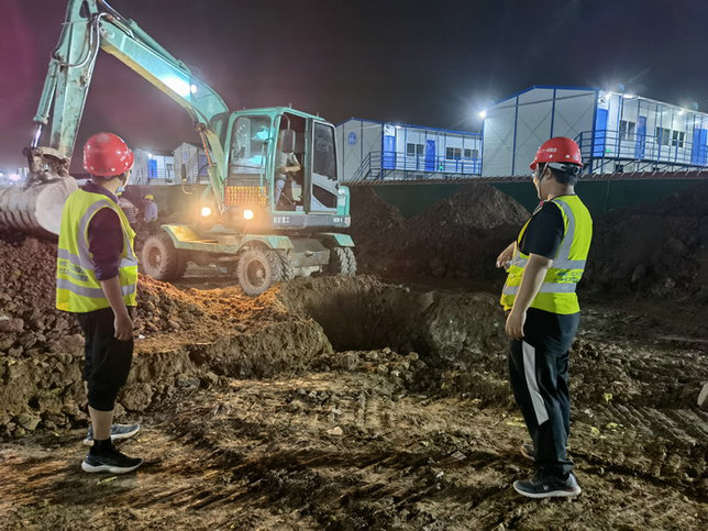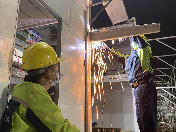 為確保交付節(jié)點(diǎn),現(xiàn)場每日召開專題會,倒排工期計(jì)劃協(xié)調(diào)解決現(xiàn)場物料采購難、穿插施工多、安裝任務(wù)重等問題,每天更新進(jìn)度,調(diào)整方案,全員兩班倒, 24小時(shí)“疫”線堅(jiān)守,從晨光熹微到夜色深沉。