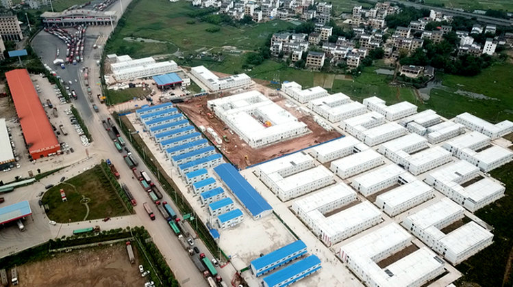圖為援建方艙醫(yī)院?jiǎn)T工爭(zhēng)分奪秒,使命必達(dá)