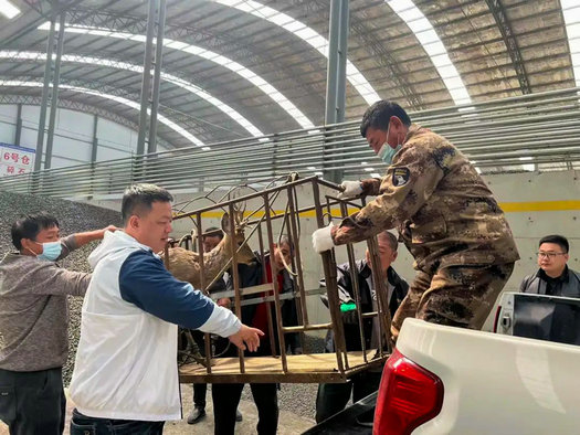 經(jīng)專業(yè)人員檢查確認,這是一只體長約1.2米、體重約30公斤的狍子,其右后腿有外傷,需要進行更為專業(yè)的救護。經(jīng)過一番精心準備,大家齊心協(xié)力把這只狍子裝進籠子,用汽車運往通化市野生動物救助中心(通化市紅嶺公園)實施救護,并將其放歸此處予以保護。