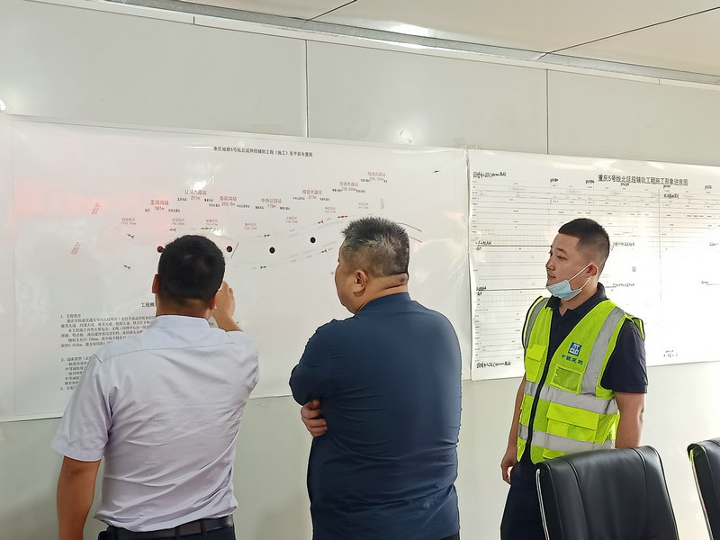 2022年5月28日上午,中鐵三局集團線橋工程有限公司副總經(jīng)理李建軍蒞臨重慶地鐵5號線北延伸段,對鋪軌現(xiàn)場、機械設備、調(diào)度室、內(nèi)業(yè)、領導帶班盯崗、機械設備日常檢查監(jiān)督、班前班后總結(jié)等進行詳細檢查,并做出重要指導;重慶地鐵5號線項目領導韓云鶴、李正學、分管運輸副經(jīng)理陳琪陪同檢查。