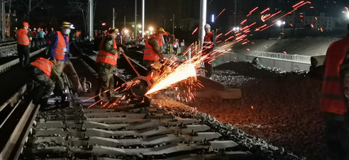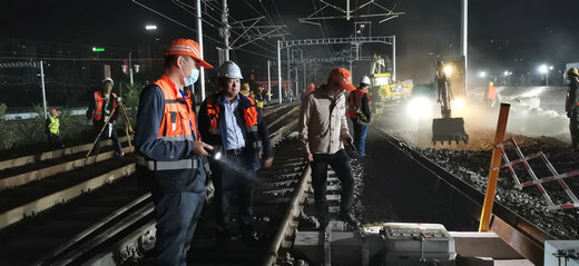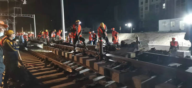 0點(diǎn)37分車站調(diào)度所施工命令下達(dá)后,由施工總指揮下達(dá)進(jìn)網(wǎng)施工指示,現(xiàn)場施工人員嚴(yán)格按照方案及交底有序開展施工,拆除防護(hù)柵欄150米,接觸網(wǎng)斷電、拆除既有線路93米、破底清篩道床、道岔縱移98米、線路上道渣、線路起道、線路搗固、電務(wù)調(diào)試、接觸網(wǎng)調(diào)整等工序有條不紊地開展,機(jī)械聲、工人作業(yè)號子聲此起彼伏。每道工序銜接有力,精準(zhǔn)無誤。經(jīng)過213分鐘奮戰(zhàn)4點(diǎn)10分提前開通,在規(guī)定時間順利完成了239#道岔鋪設(shè)施工任務(wù)。為您推薦