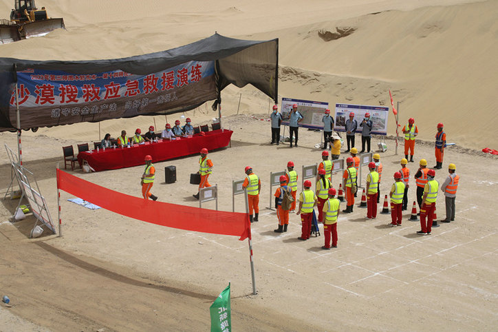 活動(dòng)儀式上,項(xiàng)目經(jīng)理對(duì)演練活動(dòng)作了動(dòng)員和部署,要求項(xiàng)目安全管理相關(guān)人員按照《應(yīng)急預(yù)案活動(dòng)方案》的安排有序開展各項(xiàng)活動(dòng),在思想上筑牢安全生產(chǎn)意識(shí),全面落實(shí)隱患整改,確保公司安全生產(chǎn)工作平穩(wěn)運(yùn)行。整場演練從沙漠發(fā)生人員走失、先期處置、預(yù)案啟動(dòng),到聯(lián)合處置、信息上報(bào)、人員搜救、應(yīng)急救護(hù),處處都展現(xiàn)出了快捷、高效、合規(guī)的特點(diǎn),受到了在場各單位點(diǎn)評(píng)人員的肯定與好評(píng)。