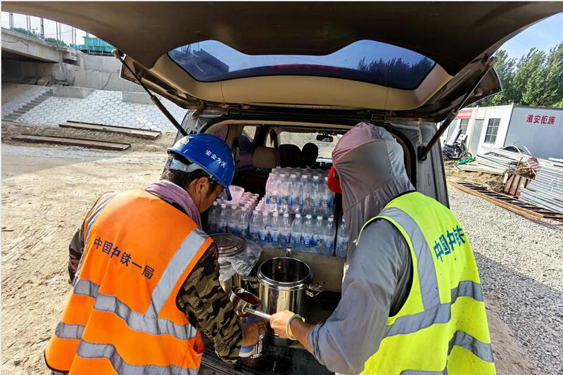 立秋后的江蘇淮安,氣溫不斷攀升,連日的驕陽似火,氣溫直逼40℃,迅速開啟“桑拿”模式。在這樣的高溫環(huán)境下,中鐵一局京滬高速公路HA4標(biāo)項(xiàng)目建設(shè)者依舊頂驕陽,戰(zhàn)高溫,斗酷暑,揮汗如雨奮戰(zhàn)一線。為做好防暑降溫工作,進(jìn)一步落實(shí)“我為群眾辦實(shí)事”活動(dòng),中鐵一局京滬高速公路HA4標(biāo)項(xiàng)目為施工一線人員送去了防暑降溫物品,確保大家在酷暑天氣里能夠清涼度夏、安全作業(yè)。