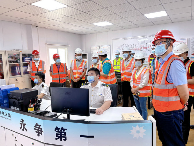 2022年10月16日,深圳市發(fā)展和改革委員會(huì)副主任鄭鐵軍蒞臨深圳地鐵13號(hào)線后海基地調(diào)度中心檢查指導(dǎo)工作,港鐵中鐵電化軌道交通(深圳)有限公司總經(jīng)理孟榮輝、副總經(jīng)理吳啟中、安全總監(jiān)蔡偉森,中鐵三局集團(tuán)線橋有限公司工會(huì)主席邸向軍,項(xiàng)目經(jīng)理劉志權(quán)、項(xiàng)目運(yùn)輸副經(jīng)理?xiàng)铊吹认嚓P(guān)負(fù)責(zé)人陪同檢查。