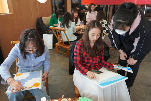 3月5日,西安建筑分公司工會組織40余名機(jī)關(guān)及各項目部女職工代表在大雁塔南廣場開展了以“詩情畫意展風(fēng)采 巾幗聚力促發(fā)展”為主題的三八婦女節(jié)主題活動。在設(shè)置的“詩句搶答、詩詞朗誦、肌理繪畫、你比我猜”等游戲環(huán)節(jié),女職工們爭先參與其中,歡聲笑語此起彼伏、現(xiàn)場氣氛熱鬧而溫馨。間隙,卸下繁忙工作女的職工們一改往日工作上的嚴(yán)肅和工裝的模樣,大家圍坐在一起邊,品茶言歡,沐浴春光,同時用手手機(jī)記錄活動中的美好瞬間。