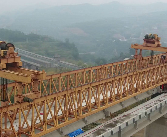 項目部還成立了運架梁安全保障小組,配備4臺運輸車輛,選擇在車輛較少的凌晨出發(fā),每5km設(shè)置一處檢查點加固繩索,在狹窄路口、轉(zhuǎn)彎等地方,提前做好車輛攔截措施,提前安排機械設(shè)備維修運梁通道,對下雨積水道路提前組織排水工作,以便盡快恢復正常施工。針對雨雪、大風天氣等惡劣自然環(huán)境嚴格按照技術(shù)方案執(zhí)行,超過七級以上大風停止架梁,并鎖定設(shè)備及梁體,保證架梁安全。